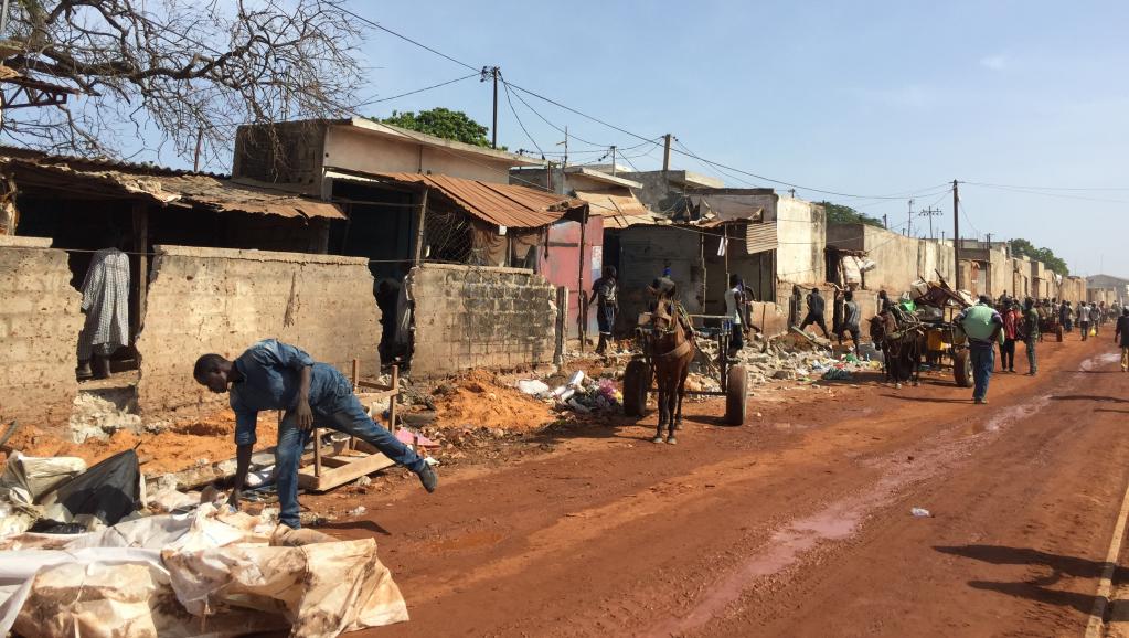 La pelleteuse vient de passer, laissant derrière elle des tas de gravats. La colère, la tension se lit sur les visages des commerçants. Assis, à la lisière des futures voies, Omar Diallo s’en prend au président Macky Sall.