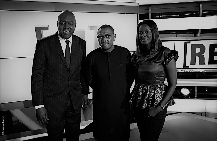 Mohamed Diallo (au milieu) , DG de la startup sénégalaise By Filling, entouré des journalistes Robert Brazza et Diarra Ndiaye, sur le plateau du magazine Réussir (Canal +)