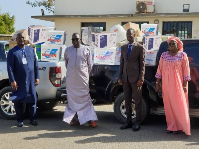 Venu soutenir – avec des dons sanitaires – mais surtout féliciter le ministre de la Santé et de l’Action sociale, absent pour participer à un conseil de sécurité, le ministre mais aussi président du parti MODEL Ibrahima Sall a été accueilli par le Secrétaire général, le directeur des ressources humaines, le président du Comité pour les dons de la structure ministérielle.