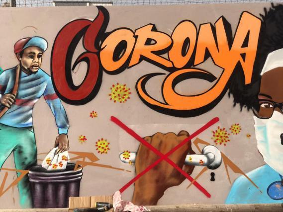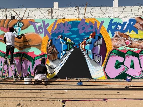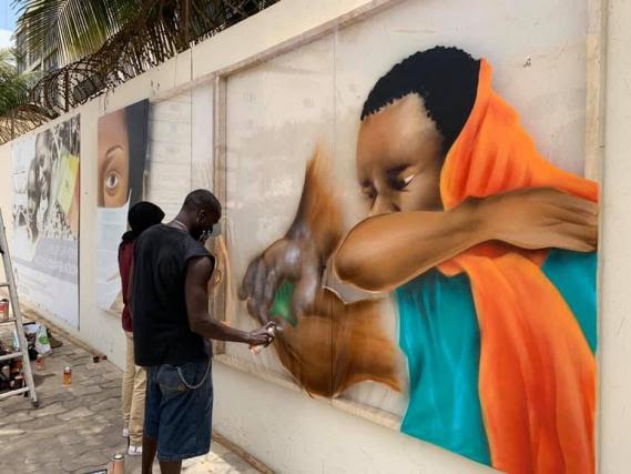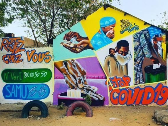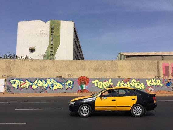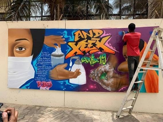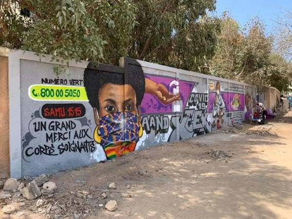 A Dakar, les artistes graffeurs des collectifs Doxandem Squad, RBS Crew et Undu Graffiti utilisent leur savoir-faire pour informer la population sur les gestes barrières universels à adopter, sur les risques encourus par les plus démunis et rendre hommage au personnel médical.