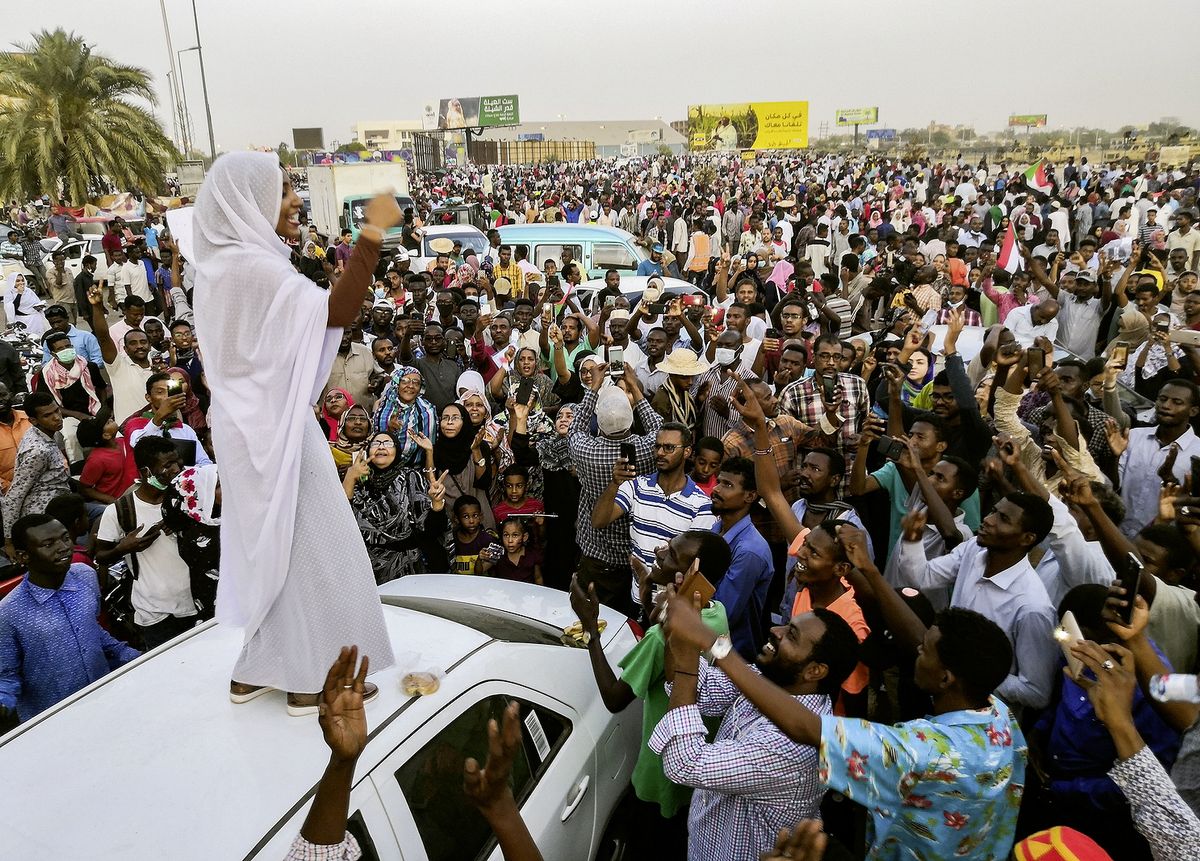 L’image de cette jeune étudiante juchée sur le toit d’une voiture pour marquer fortement pposition à Omar El Béchir, sous le régime dictatorial duquel les compatriotes de la même génération qu’elle, ont grandi, a fait le tour du monde. La persévérance – peu importe les menaces des hommes en tenue – n’y feront rien. Finalement, le président sera déchu, se verra quitter le palais pour la prison. Mais un an après, l’espoir d’une véritable libération semble prendre des couleurs grises.