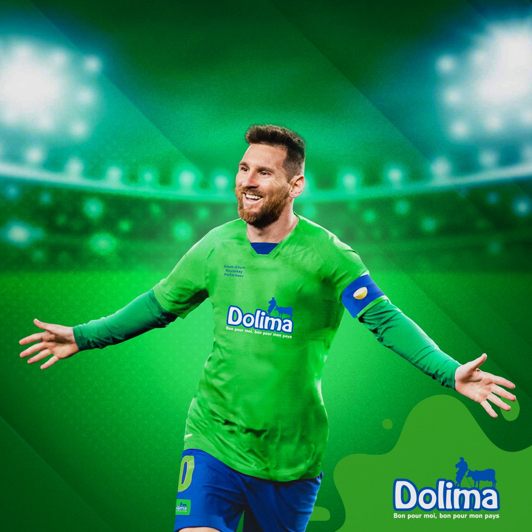 C’est ainsi que la Laiterie du Berger, qui commercialise la marque Dolima, « s’accapare » joyeusement l’attaquant barcelonais, avec ce post : « OFFICIEL Plus de doutes, on sait maintenant où Lait-O-Nel Meew-si va jouer la saison prochaine ». Le tout est accompagné de cette photo :