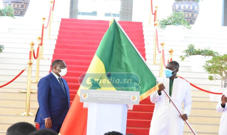 (Sentract)- Le président de la République, Macky Sall, a remis le drapeau national aux lions de la Teranga. Les poulains d’Aliou Cissé vont prendre part à la 33e Coupe d’Afrique des nations qui aura lieu au Cameroun du 9 janvier au 6 février 2022. Accueilli par les supporters, le staff, les membres du ministère des sports, les anciens lions, entre autres, invités, le chef de l’Etat a encouragé les hommes d’Aliou Cissé. Selon lui, le challenge n’est pas d’aller jusqu’en finale mais, de ramener la coupe au soir du 6 février prochain.