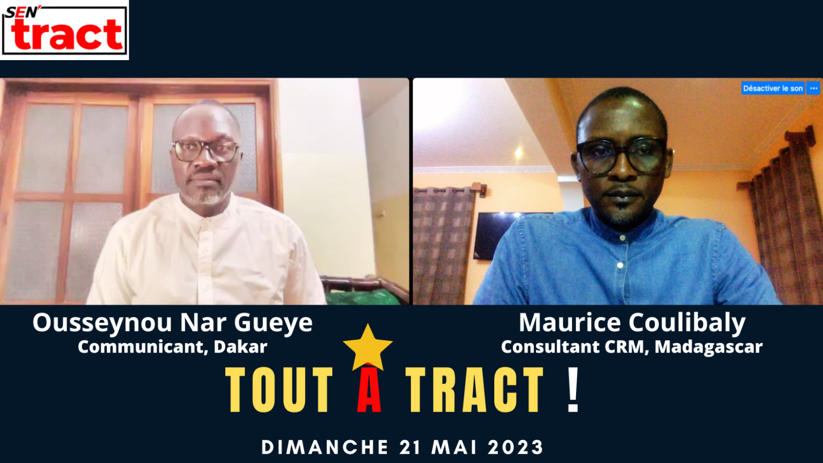Dans cette édition de votre émission ‘Tout À Tract! » du dimanche 21 mai 2023, vos chroniqueurs Maurice Coulibaly et Ousseynou Nar Gueye abordent divers sujets :