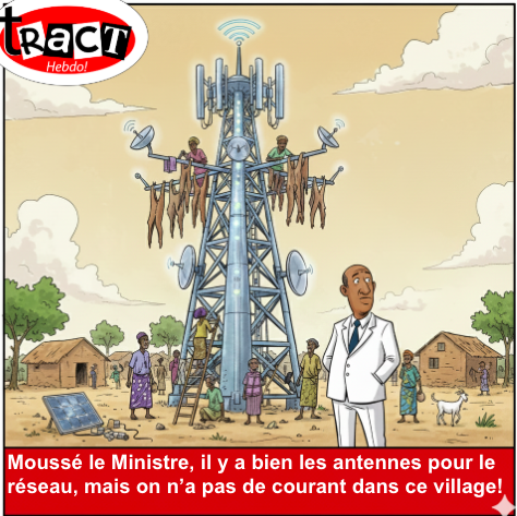 Tract Hebdo – Grand raout ce samedi au King Fahd Palace pour célébrer le « Sénégal 100% Connecté ». Discours pompeux, tablettes dernier cri et Wi-Fi qui décoiffe. Pendant ce temps, à quelques centaines de kilomètres de là, dans la banlieue profonde et les villages du Sine-Saloum, on cherche encore une prise pour charger un vieux Nokia. C’est l’Afrique nouvelle version Instagram : un beau filtre sur une réalité qui grésille.