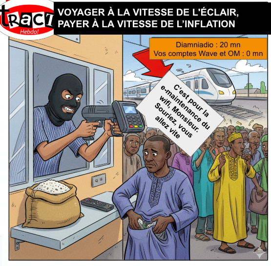 Tract Hebdo – Ce samedi, les usagers du TER ont eu une surprise de taille au guichet : un « léger réajustement technique » des tarifs. Comprenez : votre trajet coûte désormais le prix d’un demi-poulet bicyclette. Certes, on arrive à Diamniadio en un clin d’œil, mais on repart du guichet avec une larme à l’œil. À Tract Hebdo, on se demande si la prochaine étape n’est pas de transformer les rames en salons VIP où l’on servira du caviar de la Grande Côte pour justifier le prix du ticket.