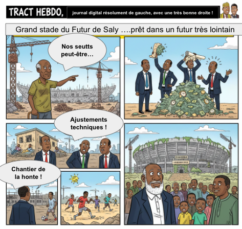 Tract Hebdo – Le « Grand Stade du Futur » de Saly Portudal, présenté en grande pompe il y a quelques années comme le joyau architectural qui allait propulser stratosphériquement le Sénégal sur la scène sportive mondiale, et pas seulement africaine avec cette CAN Maroc 2025 remportée, semble avoir pris la tangente. Les travaux avancent à la vitesse d’un escargot asthmatique, et la livraison de l’enceinte sportive est devenue une sorte de mythe urbain, au même titre que l’existence du Yéti.