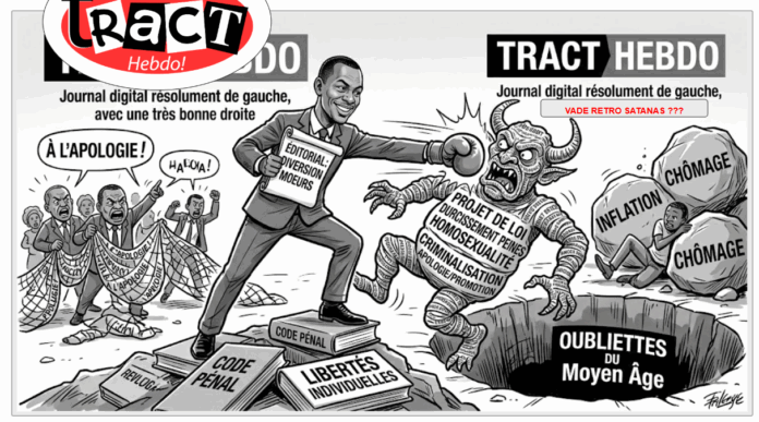 Tract Hebdo – On croyait avoir beaucoup vu en matière de diversion politique, mais là, le gouvernement Sonko 2 vient de placer la barre très haut. Dans un élan de pudibonderie législative qui confine au ridicule, nos dirigeants s’apprêtent à durcir les peines pour faits d’homosexualité. Mais le clou du spectacle, c’est l’inclusion, parmi les nouvelles infractions, de « l’apologie » et de la « promotion » de l’homosexualité. C’est l’art de criminaliser non seulement l’être, mais aussi le dire, le penser, et même le soupçonner. Un coup de génie répressif qui ferait pâlir d’envie n’importe quel régime autoritaire des années 50.