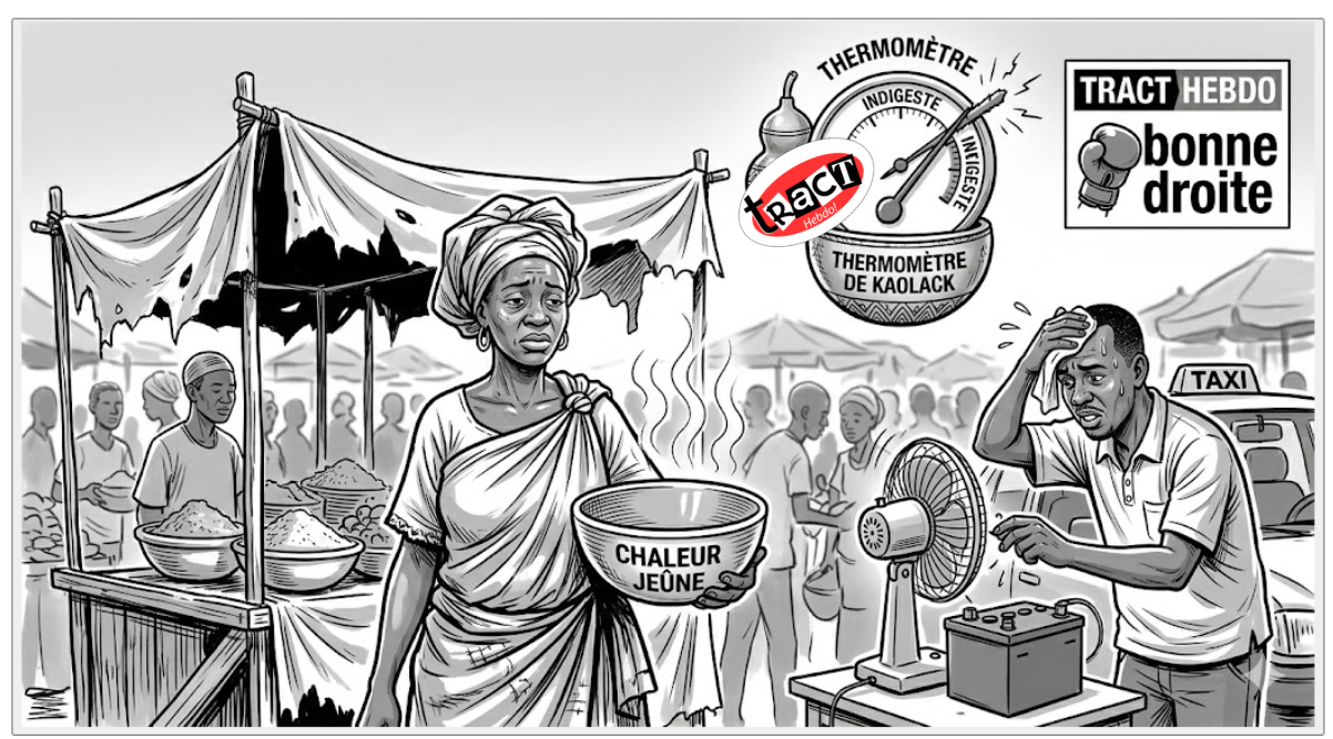Tract Hebdo – À Kaolack, ville carrefour où le thermomètre semble avoir fait un pacte avec le diable, le défi de l’adaptation n’est pas une figure de style, c’est une question de survie quotidienne. En ce moment, la chaleur ne se contente pas de monter ; elle s’installe, elle colonise, elle opprime. Et pour couronner le tout, une bonne partie de la population observe le jeûne. C’est le combo gagnant de la souffrance purificatrice.