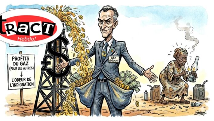 Tract Hebdo – Nous, on aime quand ça brûle, surtout quand c’est le gaz des autres qui finance nos indignations. Le gaz sénégalais arrive enfin ? Sortez les flonflons, les vuvuzelas, les tamas, les ndeundd, les riitis et vos plus beaux habits de fête. On nous l’avait promis à l’égal des promesses du Messie Ousmane S. : hé bien, le voici qui pointe le bout de son nez dans les pipelines. Tout le monde se réjouit, surtout dans les salons feutrés des ministères et les sièges sociaux des multinationales à Londres ou Houston. C’est une liesse nationale, ou du moins, c’est ce que disent les JT. Mais si l’on regarde de plus près, la fête ressemble étrangement à un mariage où le peuple est invité pour faire la vaisselle tandis que les gros bonnets s’empiffrent au buffet.