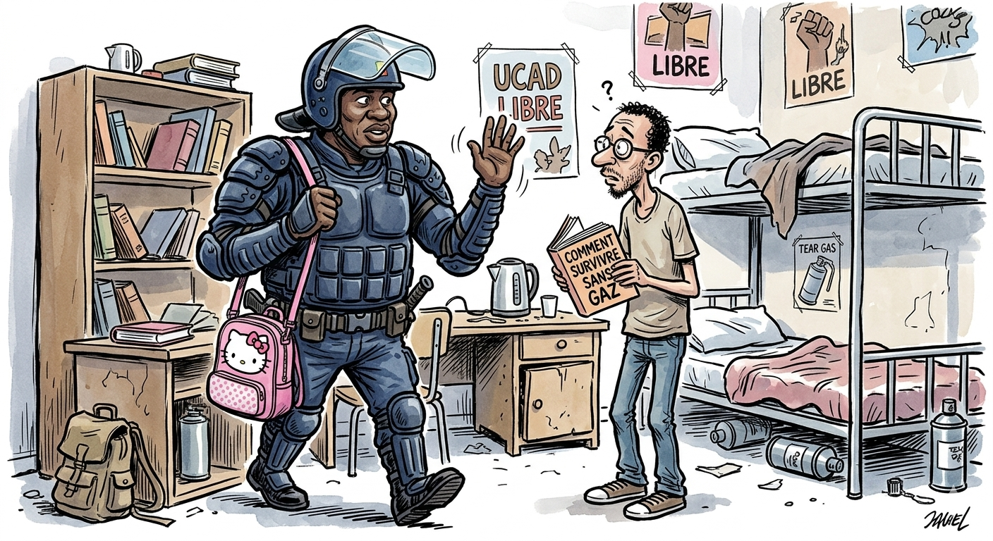 Tract Hebdo – Après des semaines d’une cohabitation (douce? pour reprendre le PM SOnko) aussi imposée que surréaliste, l’impensable s’est produit à l’Université Cheikh Anta Diop (UCAD) de Dakar. Oui, frottez-vous les yeux, mais pas trop fort car le souvenir des gaz pique encore : les forces de l’ordre, ces « hommes en bleu » devenus les colocataires les plus redoutés du campus social, ont finalement plié bagage. On les a vus, tentes sur le dos et boucliers sous le bras, quitter les lieux avec une discrétion qui tranche singulièrement avec le fracas de leur arrivée. C’est la fin d’une ère, celle où réviser le droit constitutionnel demandait une résistance pulmonaire digne d’un plongeur en apnée.